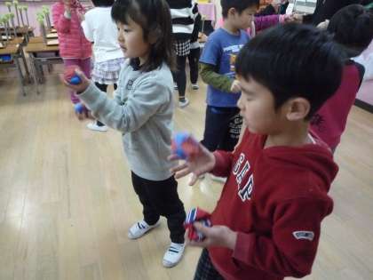 こまやお手玉はもちろん、今日は、あやとりの「教え合い」がよく見られました。