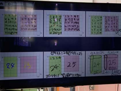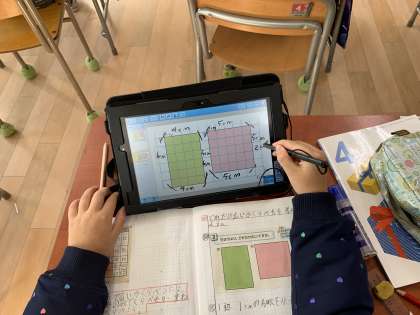 陣取りゲームをしたり、広さくらべをしたり、タブレットを巧みに使いながら、しっかりと学習しています。