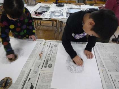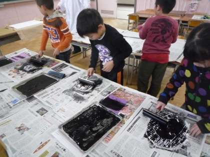 2年生が印刷しているのを見て、なんとなーくイメージはあったようですが、いざ、自分たちでするとなると、ちょっぴり緊張気味。