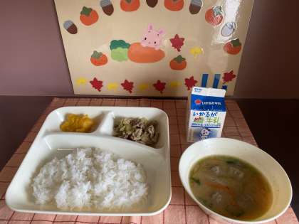 今日の給食では、「かぼちゃういろう」が給食に登場しました。