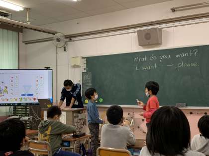ハマニー先生とは、3年の時も一緒に外国語の学習をしていたので、子どもたちにとっては懐かしいコンビの復活です。