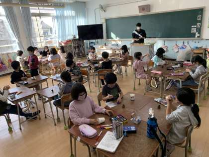 先週に町探検を行い、今回の生活科の授業では、協力していただいた場所に、お礼のお手紙を書きました。