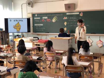 2年生で「サツマイモには、どんなえいようがあるのだろう」について栄養指導を行いました。