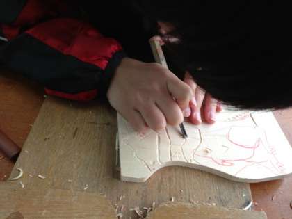 今日からは模様や絵の部分を彫刻刀で彫っていきます。