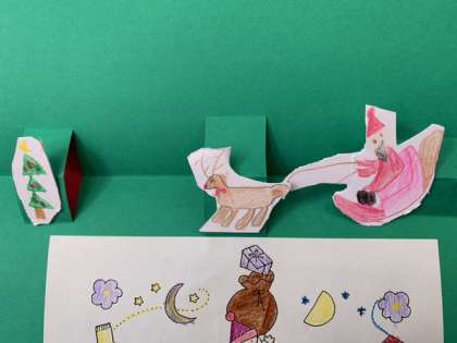 画用紙に切り込みを入れて、とび出るような工夫をしました。
