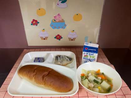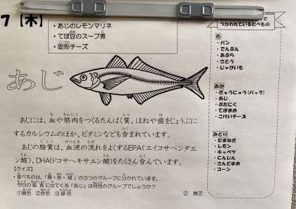 今日の給食では、「あじのレモンマリネ」の献立が登場しました。