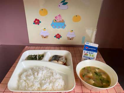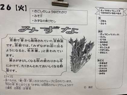 大阪市の学校給食では、年に1回、1月に使用し、「みずなの煮びたし」で今日登場しました。