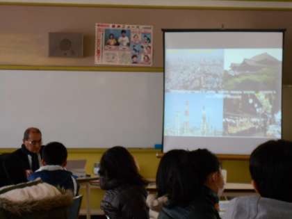 土曜授業の2・3時間目に、建築家の方によるワークショップが行われました。いろいろな建造物の設計に携わったことや建築の面白さについて語っていただきました。