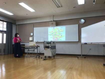 ウリナラ学級の先生、リムキョンミ先生(ソンセンニム)に、韓国・朝鮮についてお話をしていただきました。韓国・朝鮮の衣装、食べ物、遊びなどを教えてもらいました。楽しそうに聞き入っていました。
