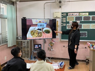 今日は食育の授業がありました。テーマは豆についてでした。