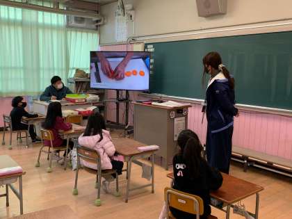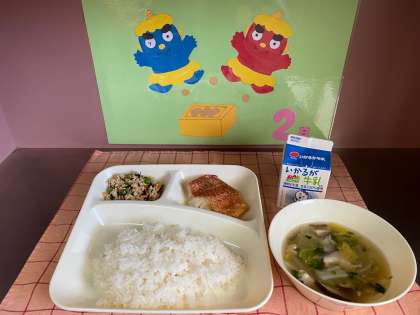 2時間目に1年生で「給食室たんけん」の栄養指導を行いました。