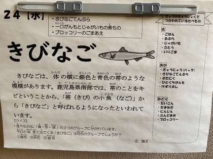 きびなごの名称の由来は、鹿児島県南部では「帯」のことをキビということから、小魚の体側中央部にある青白色の模様を帯とみて、「帯(きび)の小魚(なご)」と呼ばれるようになったことがはじまりとされています。