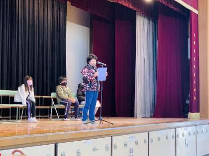 我らが4年生も2人の代表が、二分の一成人式のこととこれから自分が頑張りたいことについてしっかり発表できました。