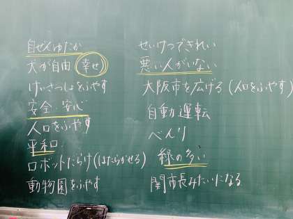 今日は「これからの大阪市は、どのような街にすればよいのだろう」をめあてに、一人一人、じっくりと考えました。