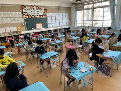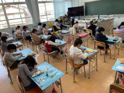 あと約2週間すれば、2年生も終わります。年度末なので、図画工作科では、作品袋作りに取り組んでいます。