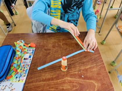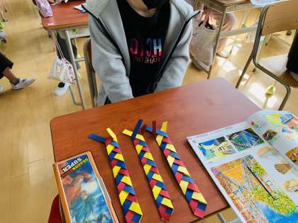 3枚の紙を編んでいきます。手際良く作っていく姿に、またしてもさすが、6年生!と感じました。