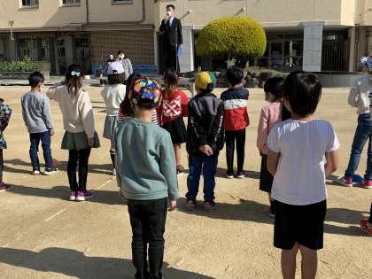 2年生になり初めての児童朝会がありました。子どもたちは朝早くから元気に登校し、自分たちで整列して待っていました。