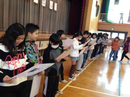 6年 卒業お祝い集会でたくさんのお祝いをしてもらいました!(2月27日)