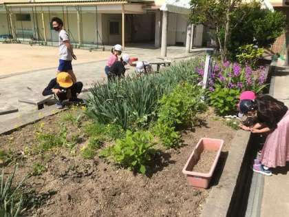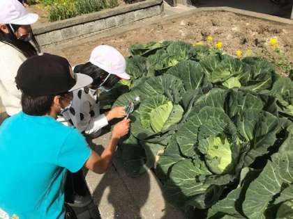 理科の学習で生き物の観察をしました。今日は新しいアイテム、虫眼鏡を使ってくわしく草花や虫を観察しました。いつもと違う見え方に、子どもたちは大喜びでした。