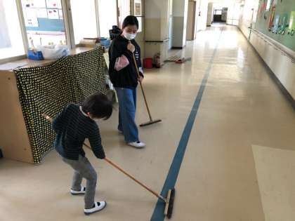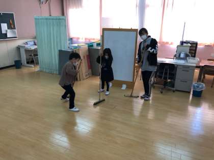 給食が終わって、すぐ下校だった1年生は、今週からそうじも頑張っています。