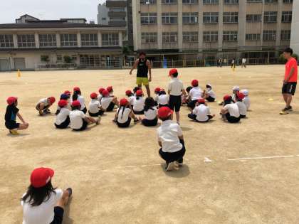 今日の3時間目の体育で森先生によるスペシャル授業が3年生と合同でありました。