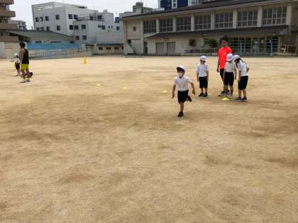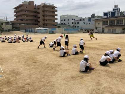体力テストに向けて、いろいろな動きを取り入れながら、子どもたちは楽しそうに体を動かしていました。少しでもいい記録がでるようにみんな一生懸命に話を聞いていました。