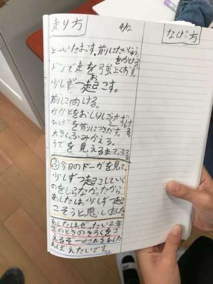 6時間目にリモートで走り方の動画を見て、ノートに大事なところ、意識したいポイントなどをまとめる学習をしました。明日は50メートル走ということで、少しでも記録をのばしたいという気持ちでみんな本当によく頑張りました。