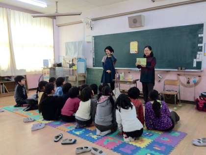 今日の2時間目に、旭おはなし隊「すみれ」の方が来られてのお話の会がありました。