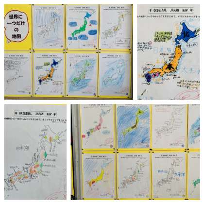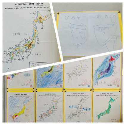 社会科では、連休前に、日本の国土について学んだことをオリジナルマップとしてまとめる宿題を出しました。