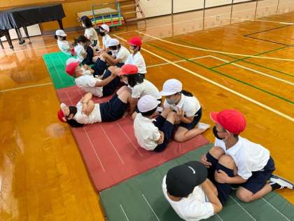 今日の3時間目に、体育館でスポーツテスト(上体起こし、立ち幅跳び、長座体前屈、立ち幅跳び)の計測を行いました。