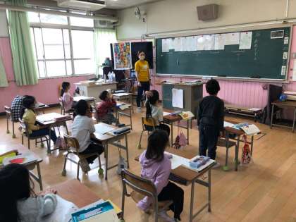 いろんな生き物が登場し、雨が好きな生き物と嫌いな生き物を先生と一緒に教科書を読みながら、分けていました。