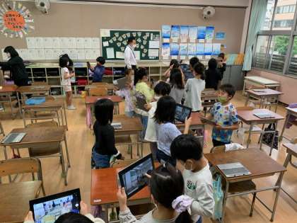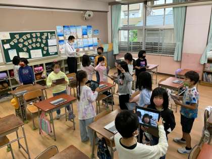 総合の時間にタブレットのカメラ機能で写真を撮ったり動画を撮影したりしました。