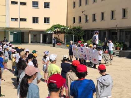 今日の児童朝会で、児童会・集会委員会のみなさんから