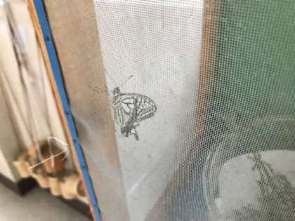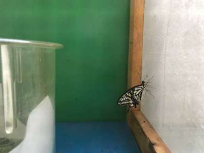 アゲハチョウのさなぎからついに成虫が出てきました。今まで音沙汰無しだったのに、今朝見たらいきなり3匹も出てきていました。雨が関係しているのかな・・・?