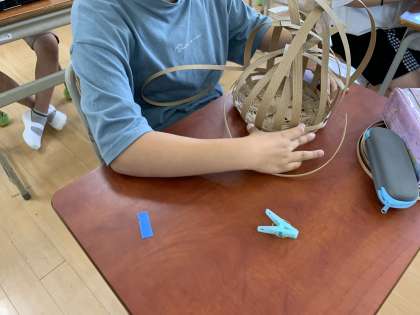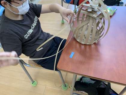 側面は色つきの紙バンドも使って編んでいくので、じわじわと個性が出てきて、面白くなりそうです!!