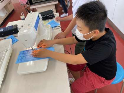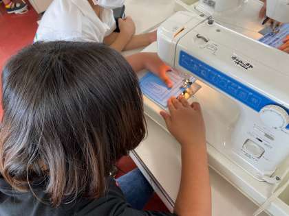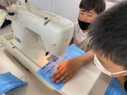 はじめてのミシンにどきどきしながらも、縫い始めてみると、楽しくなってきたようで、どんどん自分で進めていました。中には、初めてとは思えないほど、まっすぐ縫えている児童もいて感心しました。ナップサックづくりに向けてどんどん進めていきたいと思います。