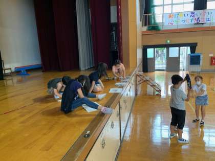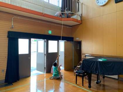 多目的室のたてよこや、講堂の舞台の長さ。頭まわりやウエストまで。