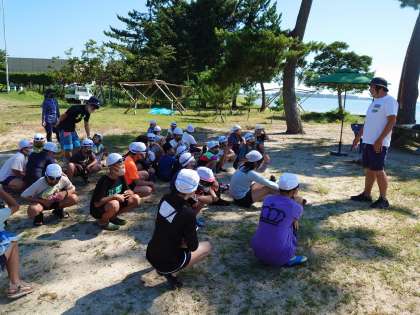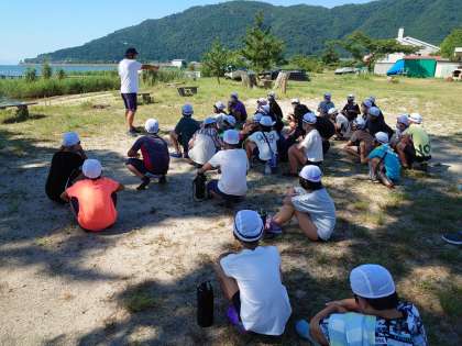 林間2日目のプログラムがスタートしました。午前中は、いかだ作りをします。