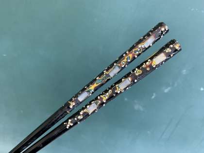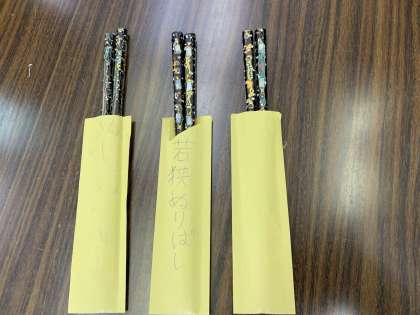 一人ひとり削り具合が違うのと貝の色合いもそれぞれに違うので、味わいのある箸になっています。