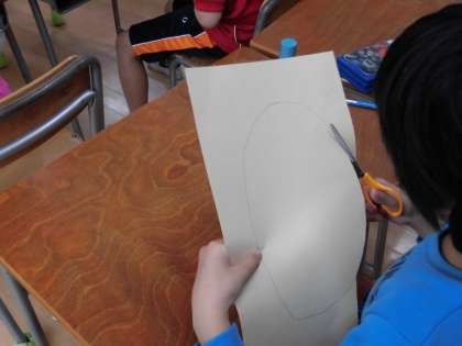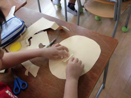 今日は輪郭を切って鼻を作って貼りました。子どもたちが「これがいい!」と思う形、大きさになるまで一人ひとりこだわって作っています。