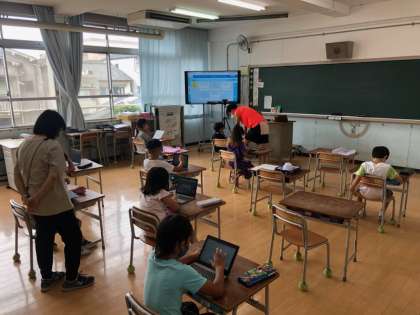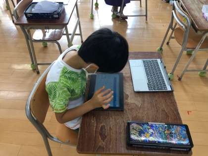 2年生は今週、タブレットを使って算数の習熟をしています。「スカイメニュークラウド」というアプリを使ったり、タブレットドリルの「ナビマ」を使ったりしています。タブレットドリルでは、問題を解くとコインがゲットできたり、自分のキャラクターのレベルがあがったりとみんな楽しく必死で学習をしています。タブレットの使い方も2年生とは思えないくらい使いこなせています。オンラインの人も学校に来ている人もみんな頑張っているのがわかります。早くみんなと楽しく学校生活がおくれる日を楽しみにしています。