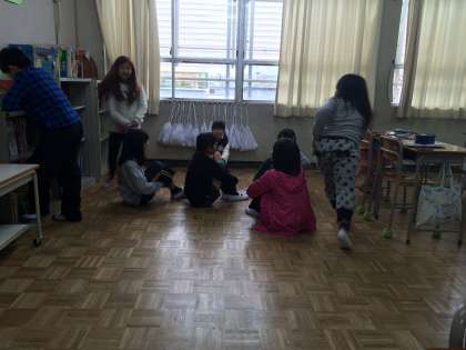 今日は、自分たちで誘い合って、ハンカチおとしをしていました。