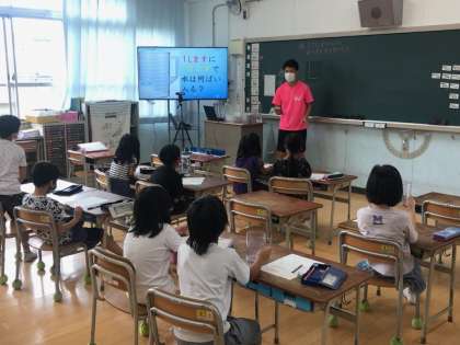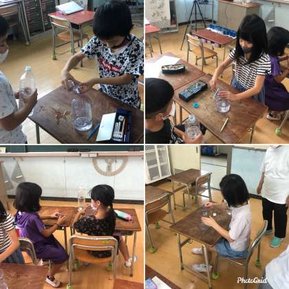 「1Lますに1dLますで水は何杯入るのか。」友だちと協力して、水とますを使って実際に実験していました。少しこぼしてしまう場面もありましたが、学校に来ているからこそできる学習もあるととても感じます。さて、何杯入ったのかな!?この体験したことを忘れずに水のかさの単位をしっかり覚えましょう。