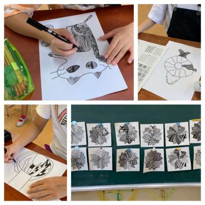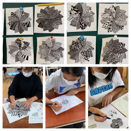 図画工作科で取り組んでいたゼンタングルの練習作品が完成しました。