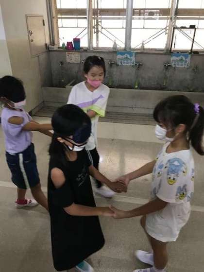 「バリアフリーについて考えよう」というめあてで取組を行っています。その一環として、今日は目が見えないことはどれだけ不自由かをアイマスクを使って体験しました。アイマスクを付ける人とそれを介助する人のペアになって活動しました。みんな、いつも当たり前にできていることが安心してできないことを実感していました。来週は、車いすにも乗ります。