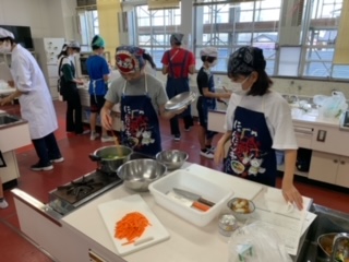 そのおかげか、みんなで協力して手際よく調理することができました。出来上がるにつれて周りからはいい匂いでいっぱい!食べるのを楽しみにしながら後片付けも綺麗にすることができました。