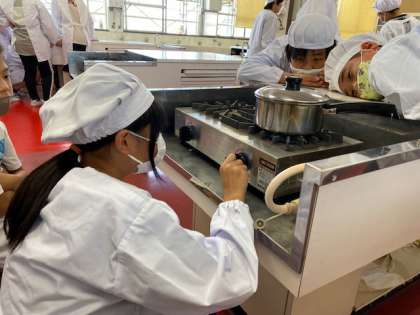 緊急事態宣言が明けて、5年生は来週初めて調理実習を行います。それに向けてガスコンロの使い方や、家庭科室のルールを学習しました。