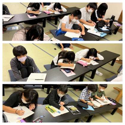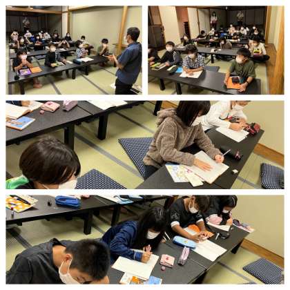 今日心に残ったことや明日に向けて気をつけることなど、修学旅行のめあても含めて振り返りました。