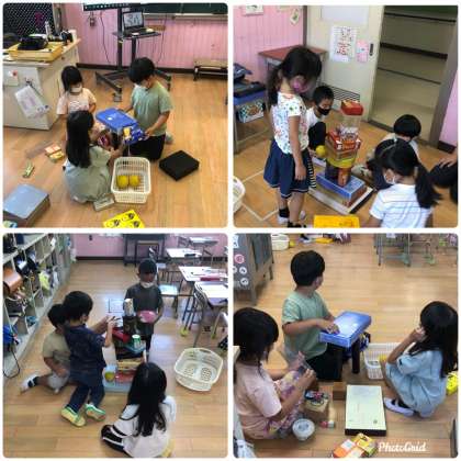 いろいろな形の箱を使って、いろいろなものを作っていました。