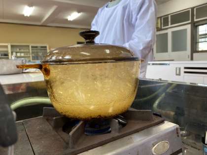 今日はごはんを炊いて、みそ汁を作りました。にぼしの頭とはらわたをとって、水に漬けて、お出汁をとりました。とってもいい香りがしてきました。